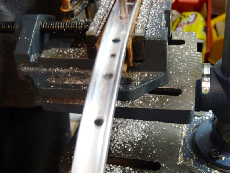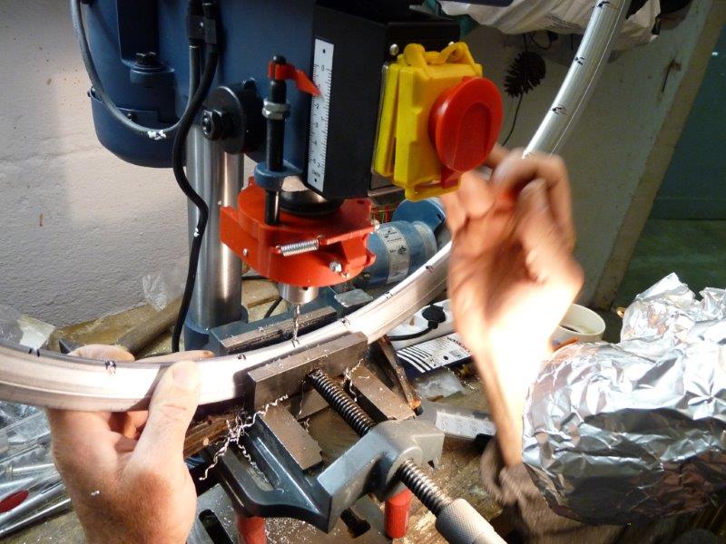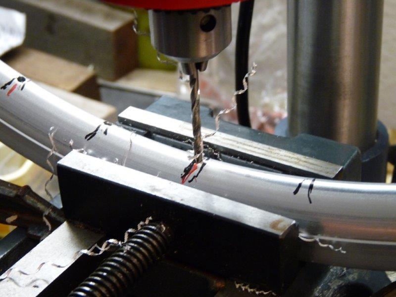 Wir bohren die kleinen 4,5 mm Nippellöcher ohne Vorbohren in einem Gang gleich mit der entgültigen Bohrergröße 4,5 mm .